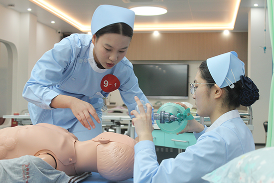 第一賽道中,選手們分工明確,心肺復蘇時按壓精準、呼吸規范,與時間“賽跑”。