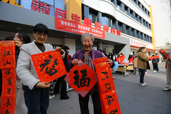 12月23日,沈家門街道成校墨之韻書法社團的10位學員,攜手舟山市女書法家協會的成員,走進沈家門街道民生綜合體,揮毫潑墨寫春聯、送福字,為轄區群眾送上冬日里的文化暖意。這是該社團成立兩年來,又一次深入基層服務群眾,盡顯其與日俱增的社會影響力。