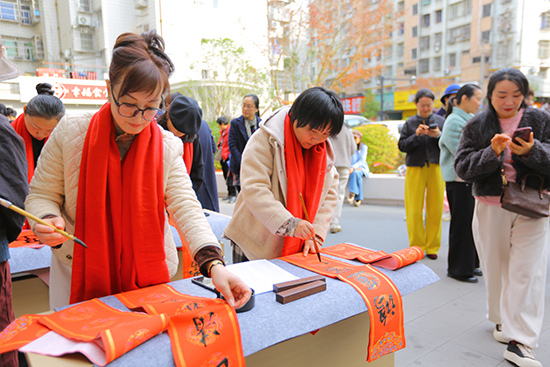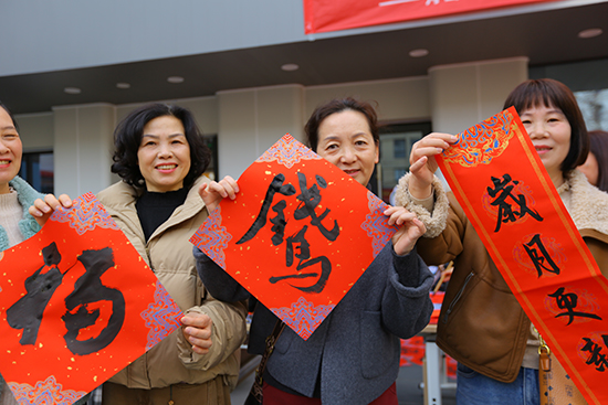 紅紙鋪展,墨韻飄香。一幅幅筆力遒勁的“福”字躍然紙上,“國富民強萬物盛 人和家興百業昌”“和順一門添百福 平安二字值千金”“一帆風順全家福 萬事如意滿門春”等寓意吉祥的春聯,被聞訊而來的群眾爭相領取,大家手捧墨寶,臉上洋溢著幸福的笑容。