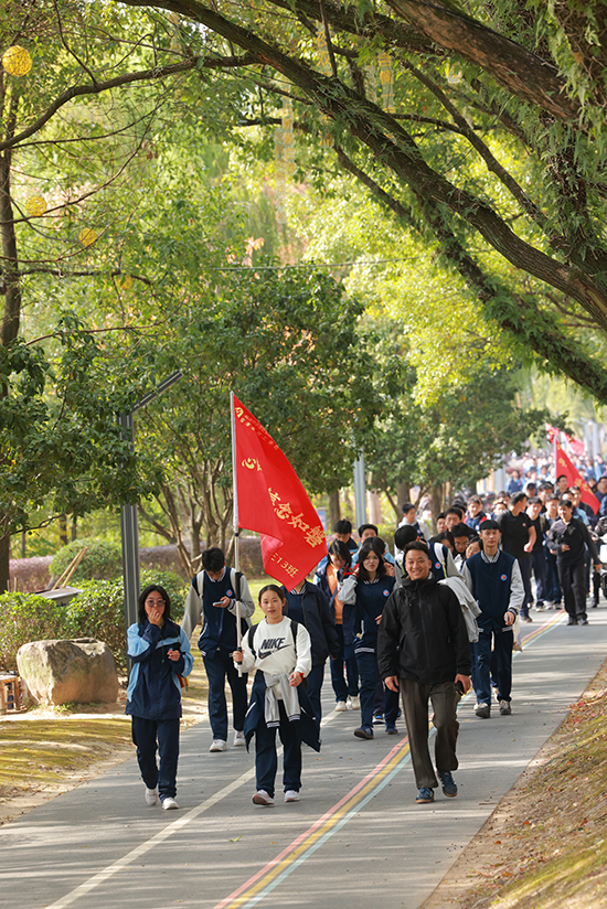 沿途,學校精心設置了五個打卡點,分別為“揚帆啟航”“志向高遠”“思如泉涌”“筆下生輝”和“金榜題名”。這些打卡點不僅巧妙地串聯起了毅行的路線,更寓意著高三學子從立志、積累、突破到圓夢的完整成長軌跡。同學們在每個打卡點都鄭重地蓋上印章,然后合影留念。那一張張青春洋溢的笑臉,在鏡頭前定格成永恒,他們將自己的理想與誓言鐫刻在了這場征程之上。