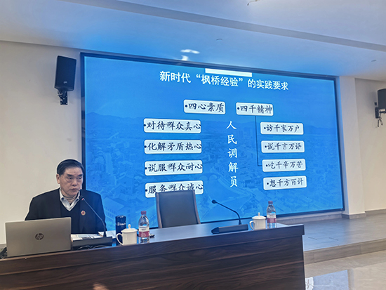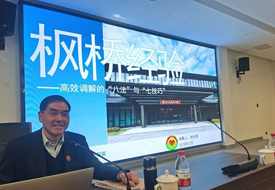 12月12日,紹興市第一期“紅楓式”義警孵化組織負責人培訓班在諸暨楓橋學院正式開訓。諸暨市楓橋鎮(zhèn)人民調解委員會專職調解員、楓橋鎮(zhèn)調解志愿者聯(lián)合會副會長楊光照,以《“楓橋經(jīng)驗”高效調解的“八法”與“七技巧”》為題,為全體學員帶來了一堂干貨滿滿的實戰(zhàn)課。