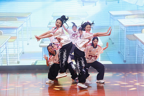 S街舞社參賽的團體作品《我們的青春》,以校園日常為創作靈感,將上課起立、寫字、舉手發言等生活化場景融入街舞編排,用充滿青春活力的肢體語言詮釋著少年們積極向上的精神風貌。這份亮眼成果的背后,是同學們日復一日的艱辛付出。