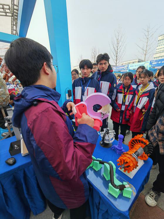 隨后,學院學生張嘉楠介紹了自主設計制作的3D打印文創產品、精密機械零件模型,從設計思路、技術應用到實踐價值等方面進行了細致闡述,展現出青年技能人才的創新活力與扎實功底。