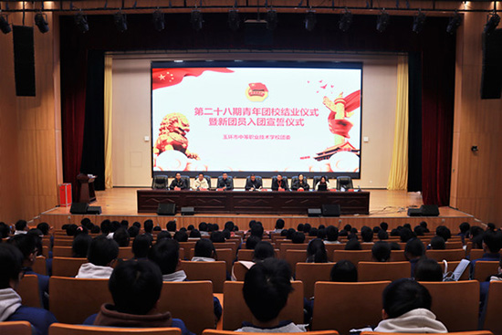 12月25日中午,玉環市中等職業技術學校在學校大報告廳隆重舉行第二十八期青年團校結業典禮暨新團員入團宣誓儀式。學校副校長金松,政治輔導員蔡其標、汪光岳、王金偉,團委書記袁安及506名結業學員參加。儀式由團委副書記林旭環主持。