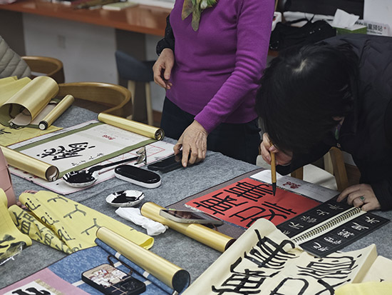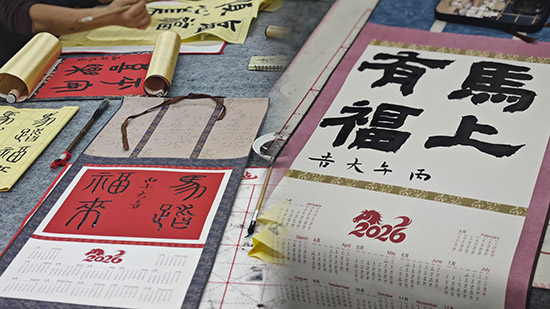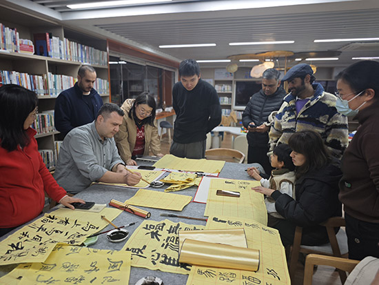 本周的課程從漢語的聲調練習開始。在扎實的語言基礎教學后,課堂延伸至社區同期開放的城市書房“書法自習室”。書法能人李老師在張老師的語言協助下,共同講解了“馬”字的文化寓意,呼應即將到來的農歷馬年,更帶領中外學員們將書法藝術與日歷制作相結合。“這不僅僅是學語言,更像在觸摸中國的脈搏。”一位外籍學員舉起自己完成的作品感慨道。現場墨香陣陣,笑語聲聲,“國際鄰里”的概念正通過一筆一劃的漢字、一字一句的漢語,悄然生根,綿延生長。