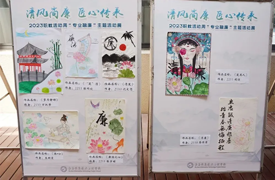 立足中職教育特點,學校推動黨建工作與專業建設、文化傳承、家校協同深度融合,讓清廉建設更具生命力。黨建+專業融廉,發揮各專業優勢創新廉潔教育形式,會計專業強化“誠信為本,不做假賬”職業教育,平面設計專業打造清廉IP形象“規規”“矩矩”,烹飪專業研發“廉潔菜品”菜單,旅游專業制作清廉微視頻《職教有廉·細微之處見修行》,非遺課程中師生共同創作清廉主題盤扣、泥塑等作品,以專業技藝傳承廉潔理念。黨建 +文化浸潤,優化校園廉潔環境建設,打造黨建清廉長廊、教學清廉長廊、勞動教育基地等特色陣地,在圖書館設置廉潔文化書架,通過電子屏、班牌等媒介常態化宣傳廉潔故事,讓校園處處見“廉”影。黨建+家校聯動,建立校級廉潔教育中心、社區廉潔驛站、家庭廉潔微基地三級聯動機制,開展清廉小報展、清廉家訓展、清廉進社區等活動,形成“學校傳廉、家庭守廉、社區踐廉”的良性互動格局。