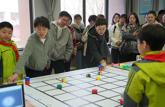 晨光微熹,在天長世紀小學校領導的陪同下,教師團一行實地參觀了學校“世紀小鎮”8+N空間站。創客中心內,“小小創客代言人”自信演示實踐成果,3D打印設備、機器人競賽器材有序陳列,盡顯科創教育的蓬勃活力;體藝樓里,德育積分兌換評價機制的創新實踐令人眼前一亮,孩子們的點滴進步被量化為“世紀通寶”,這種可感可觸的正向激勵,讓教育更接地氣、更具溫度;金絲彩砂畫非遺工坊中,師生共創的作品精美絕倫,鋪展開一幅匠心傳承的生動畫卷。以銀杏葉為校園IP的“小銀杏”系列課程更是讓人嘆為觀止,從“銀杏節”跨學科實踐活動,到銀杏主題藝術展的創意呈現,這片金黃不僅是校園的自然景致,更成為推進課程融合、落實五育并舉的特色文化載體,將天長世紀小學的教育巧思藏入每一片葉脈。合唱教室內,悠揚童聲陣陣回蕩,老師們既沉醉于美育浸潤的濃厚氛圍,更驚嘆于學校原創音樂入選教材的亮眼成果,深切見證藝術教育扎根校園的生長力量。博愛墻的溫情寄語、博學館的厚重底蘊、博藝小舞臺的鮮活展演,一個個特色場館串聯起“環境育人”的生動圖景,讓“博愛、博學、博創”的辦學核心理念真正觸手可及。