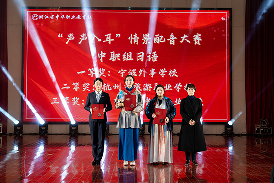 本次大賽由浙江省中華職業教育社國際職業教育專門委員會主辦,是一項面向全省職業院校學生、融跨文化外語能力與中華文化傳播素養于一體的創新實踐類賽事。備賽期間,各團隊反復研讀文本,揣摩人物心理,一字一句打磨發音與語調,力求在準確傳達語義的同時,注入打動人心的情感力量。賽場上,同學們以流暢的外語、真摯的情感與生動的表演,將一個個中國故事鮮活地呈現出來,讓評委與觀眾深切感受到故事中的文化魅力,最終贏得了現場的一致好評。