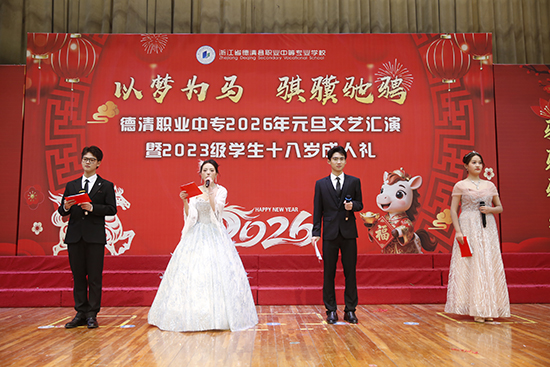 12月31日,德清職業中專全校師生、家長代表與嘉賓們齊聚體藝館,共同見證了“以夢為馬 騏驥馳騁”2026年元旦文藝匯演暨2023級學生十八歲成人禮,迎接新年的到來。