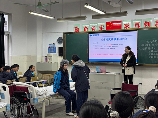 人文健康系關(guān)注素養(yǎng)與照護,曹韻、高娜娜兩位老師分別從傳統(tǒng)山水畫技法與養(yǎng)老照護實操入手,實現(xiàn)審美教育與人文關(guān)懷的雙重育人目標。