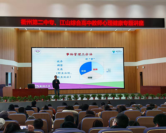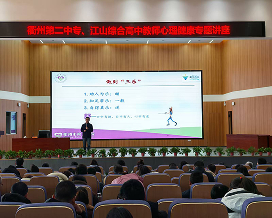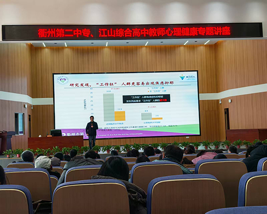 為切實關(guān)懷教師身心健康,緩解教育教學(xué)壓力,提升職業(yè)幸福感與心理調(diào)適能力,1月9日下午,衢州第二中等專業(yè)學(xué)校、江山綜合高中舉辦2026年首場心理健康教育講座。活動特邀衢州市第三醫(yī)院精神科主任醫(yī)師、資深心理治療師鄭利鋒蒞臨授課,為全體教師送上了一場干貨滿滿的“心靈賦能盛宴”。