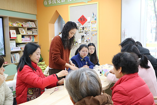 1月15日上午9:30,新碶成校鄰里共制“掌中芬芳”活動準時開始。