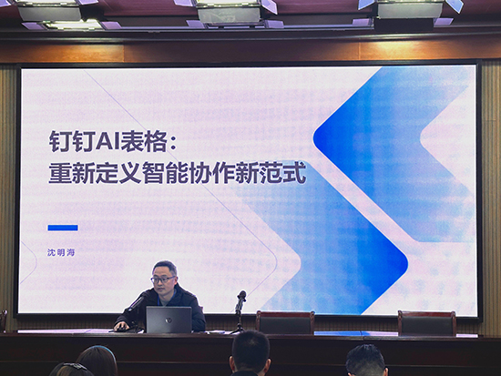 在隨后的會議議程中,教學質量處副處長沈明海帶來“釘釘信息化應用賦能教學提質”專題講座。結合當前 AI 技術重塑教育生態的發展趨勢,沈明海系統介紹了AI表格的核心功能與運作模式,通過現場操作演示詳細講解了其使用方法,并就實際應用中可能遇到的常見問題作了解答。講座內容緊密貼合一線教學需求,旨在幫助教職工快速掌握AI表格等技術工具在教育教學場景中的應用,進一步提升教學效率與管理水平。與會教師反映,此類培訓具有很強的實用性和針對性,為學校推動“AI+教育”融合、深化數字化校園建設提供了有效支持。