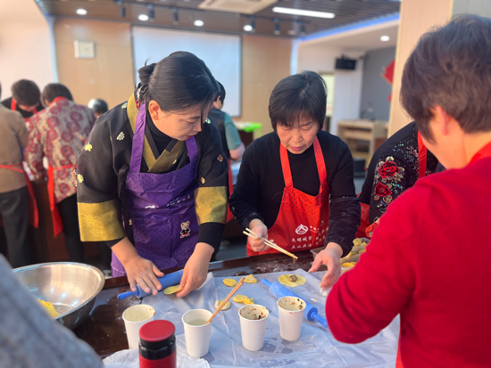 “和面要三光——盆光、面光、手光,這樣和出來的面才筋道。” 陳老師邊操作邊講解,將復雜的面點制作技巧分解成通俗易懂的步驟。學員們圍在老師身邊,認真聆聽每一個細節,不時提出問題,現場學習氛圍濃厚。在陳老師的手把手指導下,居民們紛紛動手實踐,大家互相切磋技巧,分享經驗?,F場歡聲笑語不斷,一雙雙巧手捏出了形態各異的餃子,有傳統的月牙形,也有創新的元寶形、玫瑰花形等。