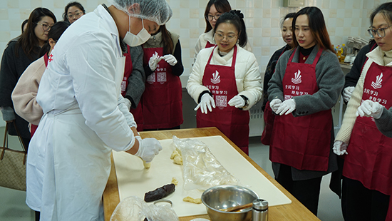 與此同時,烘焙教室內則是一片熱火朝天、甜香四溢的景象。在面點師傅的指導下,大家分組協作,從稱量配料到揉捏造型,從精心裝飾到期待出爐,每一個步驟都充滿了歡聲笑語。當一個個寓意“團圓美滿”的創意糕點新鮮出爐時,成功的喜悅與濃濃的年味交織在一起,凝聚了團隊力量,也烘托出喜迎新春的歡樂氛圍。