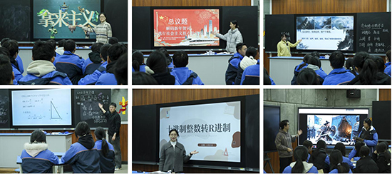 新教師們緊扣時代脈搏,將技術賦能與人文浸潤有機融合。計算機課堂上,屠余杰老師以《鴻門宴》為依托,引入豆包、即夢等 AI 工具,引導學生通過關鍵詞設計提示詞還原經典場景,借助學習通實現數字化教學閉環。金凱靈老師從電影《孤注一擲》的情境切入,將抽象的進制轉換化為可觸可感的游戲與實例。德育組的鐘姝婷老師將社會主義核心價值觀與時代熱點結合,通過生活案例辨析傳遞正向價值。
