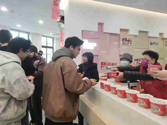 活動精心設計了八大體驗板塊,每個環節都體現了兼容并蓄的社區特色。在粥香四溢的派送區,中外志愿者并肩服務,將暖粥遞到每一位居民手中。不同語言的道謝與祝福在此交匯,“臘八安康”的問候以中文、英語等多種方式溫暖傳遞。書法區內,外籍居民對揮毫潑墨展現出濃厚興趣,在老師的指導下嘗試書寫“福”字,親身感受漢字書法的藝術魅力。