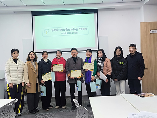 為提升學(xué)習(xí)趣味性,活動(dòng)設(shè)置了“單詞接龍”“你畫我猜”等游戲環(huán)節(jié),村民們分組競賽,笑聲與掌聲此起彼伏。同時(shí),來自天荒坪成校的志愿者全程跟班輔導(dǎo),針對(duì)基礎(chǔ)薄弱的學(xué)員進(jìn)行“一對(duì)一”糾音,確保每位參與者都能跟上節(jié)奏。“老師講得細(xì)致,志愿者也很有耐心,以前不敢開口說英語,現(xiàn)在能簡單交流了!”剛獲得“今日最佳團(tuán)隊(duì)”成員的村民李大哥舉著榮譽(yù)證書笑道。