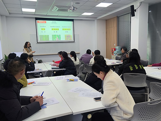 本次新課緊扣“共富”主題,聚焦“安吉好物”的英語表達(dá)。葛教授結(jié)合安吉白茶、竹制品、筍干等地方特色產(chǎn)品,通過“單詞卡+實(shí)物展示”的方式,逐一教學(xué)“Anji White Tea”“bamboo products”“dried bamboo shoots”等核心詞匯,并創(chuàng)新采用“中文讀音標(biāo)注”輔助記憶,降低學(xué)習(xí)門檻。針對(duì)村民關(guān)心的“好物購”場景,她重點(diǎn)講解了“How much is it?”“How do you pay?”等實(shí)用句型,現(xiàn)場模擬買賣對(duì)話,讓學(xué)員在互動(dòng)中掌握溝通技巧。