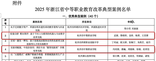 1月26日,浙江省教育科學研究院公布2025年浙江省職業教育改革典型案例入選名單,杭州市中策職業學校報送的兩項案例雙雙獲評“優秀典型案例”。