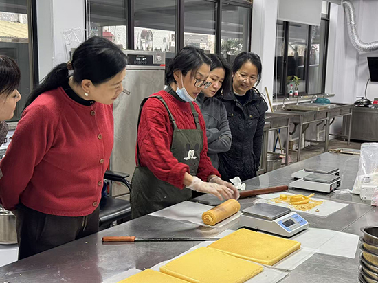 近日,新碶成校依托“侖傳”平臺數字化服務優勢,創新推出”云報名+線下實訓“烘焙課程,二十余名學員通過便捷的線上報名系統開啟蛋糕卷制作學習之旅。此次課程聚焦于經典甜點——蛋糕卷的制作,吸引了眾多烘焙愛好者參與,為大家帶來了一場甜蜜又充實的學習體驗。
