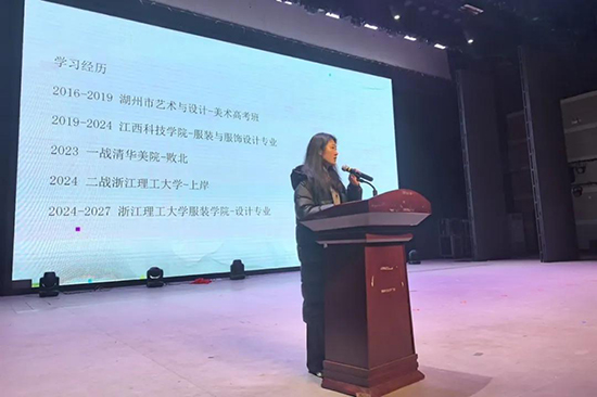 1月30日,星海演出廳內激情洋溢,2016 級美術高考班優秀畢業生、現浙江理工大學服裝專業研究生葉佳云同學重返母校,為學弟學妹們帶來了一場主題鮮明、催人奮進的勵志講座。本次講座旨在幫助正值迷茫期的職高學子找準方向、明確目標,以學姐的真實求學經歷為他們注入成長動力。