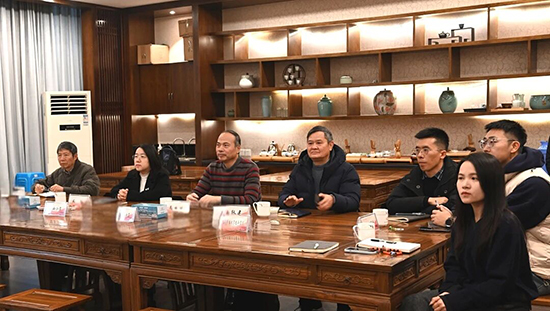 會議伊始,參會人員實地參觀了浙江開放大學臨平學院的特色茶藝室,欣賞了學生的茶道表演。雅致的茶室中,宋韻點茶器具陳列有序,非遺漆扇等文化展品相映成趣,濃厚的傳統文化氛圍撲面而來。師生研習茶禮、體驗茶道的實踐空間,更成為非遺文化與校園教育深度融合的生動縮影,讓人直觀感受到臨平校園茶文化建設的扎實根基。