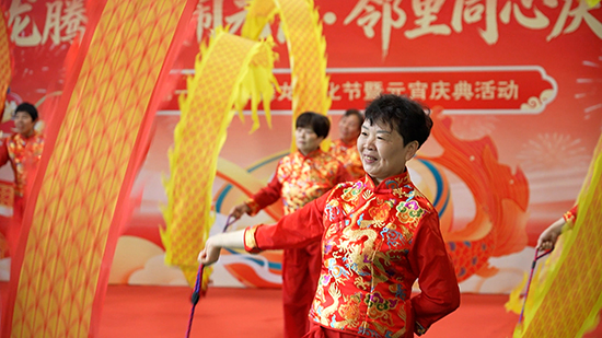 巡游過后,文藝匯演在萬眾期待中拉開帷幕,十一個(gè)特色節(jié)目依次登場,高潮迭起。浦樂幼兒園的小朋友們率先帶來舞蹈《中國龍》,稚嫩的舞姿萌態(tài)十足,生動(dòng)傳遞出新生代對(duì)傳統(tǒng)文化的喜愛;山二舞龍社的壓軸之作《龍騰四海》則盡顯專業(yè)風(fēng)范,隊(duì)員們默契配合,將舞龍的剛勁有力與靈動(dòng)飄逸演繹得淋漓盡致,博得滿堂喝彩。活動(dòng)現(xiàn)場,山二社區(qū)黨委書記、居委會(huì)主任來國華登臺(tái)致辭,向全體居民致以元宵佳節(jié)的誠摯問候和美好祝福;許南疆主持的《老墻門》贈(zèng)書儀式同步舉行,為社區(qū)文化建設(shè)注入了新的活力,讓縷縷書香浸潤?quán)徖镄奶铩?/p>