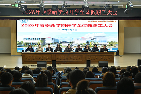 駿馬奔騰,新春啟航。3月3日上午,杭州市喬司職業高級中學召開2026年春季新學期全體教職工大會。校長葉飛飛主持會議,校黨委書記卻旦對新學期十大工作目標進行解讀,各分管副校長對各條線上的具體工作進行了部署。
