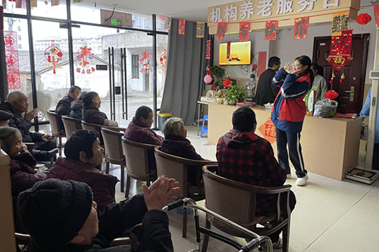 為豐富老人們的精神文化生活,志愿者們還精心準備了文藝節目。歌聲、笑聲交織在一起,志愿者們用俏皮的舞蹈、嘹亮的歌聲、輕快的旋律,為老人們獻上了一場簡單而溫馨的文藝表演,贏得了老人們陣陣熱烈掌聲。看著老人們臉上洋溢的幸福笑容,志愿者們也深深體會到了志愿服務的意義與價值。