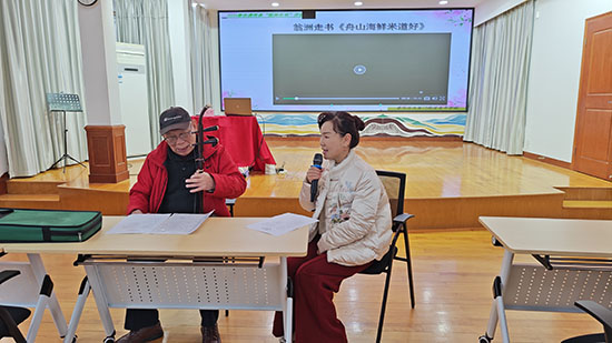 翁洲走書作為舟山群島歷史悠久的傳統(tǒng)說唱藝術(shù),以方言吟唱為紐帶,融合說、噱、演、唱等多種表演形式,搭配二胡、篤板等樂器伴奏,將海島百年風(fēng)云與市井煙火娓娓道來,兼具濃郁地方特色與深厚文化底蘊(yùn)。為守護(hù)這一文化瑰寶,破解傳承難題,沈家門街道成人學(xué)校精心籌備本次培訓(xùn)班,搭建非遺傳承實(shí)踐平臺(tái),讓古老曲藝煥發(fā)新生。