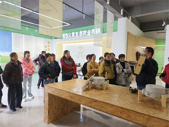 當日上午,陽光和煦,老莊村婦女代表們在學校工作人員的帶領下,懷著期待的心情齊聚義泉農場,開啟了一場生動實用的生態農業探索之旅。作為安吉本地深耕生態農業的標桿陣地,義泉農場始終踐行“綠水青山就是金山銀山”理念,打造了集生態種植、多元種養、品牌培育于一體的現代農業模式,不僅培育出榮獲“浙江省好稻米金獎”的優質稻米,還推出了“義泉大叔”“米姑娘”等特色農產品品牌,在生態農業發展與品牌化經營道路上走出了特色之路,更為周邊鄉村發展提供了可借鑒的共富范本。