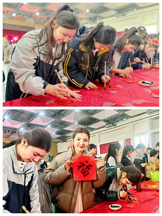 2月14日,正值農歷臘月廿七,系列活動的最后一站走進了平湖市職業中等專業學校。學院作為聯建單位之一,參與了該校新疆中職班“迎丙午年傳統文化微講座”及民俗體驗活動。學院書法班的師生們與新疆班的同學們齊聚一堂,開展了一場別開生面的文化交流。師生們不僅現場演示書法,書寫“福”字與春聯,更熱情地指導新疆班的同學們提筆嘗試,講解漢字結構與書法韻律。筆墨之間,傳遞的不僅是新春的祝福,更是中華民族共同體意識。一副副共同完成的春聯,一個個互贈的“福”字,見證了本地長者與新疆學子其樂融融的溫馨場景,讓遠離家鄉的學子們在第二故鄉平湖深切感受到了中華傳統文化的博大精深和家一般的溫暖團圓之情,也為“民族團結一家親”的畫卷添上了濃墨重彩的一筆。