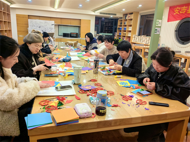 開班當晚的課堂氛圍十分濃厚。非遺剪紙課上,學員們在老師的細致指導下,熟練掌握紙張折疊、紋樣裁剪等技巧,一步步完成了一幅幅寓意吉祥的百變團花創(chuàng)作——這種呈圓形花樣、四面均齊的剪紙形式,承載著人們對美好生活的期許,也讓學員們在動手實踐中感受非遺文化的魅力。手工編織課堂上,學員們專注投入,在老師的耐心講解下,一針一線勾勒,親手完成了一個個靈動可愛的繩編小馬作品,馬的意象既契合馬年主題,也承載著“馬到成功”的美好祝福,看著自己的勞動成果,學員們紛紛表示收獲滿滿、倍感充實。