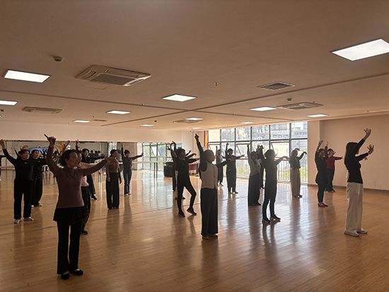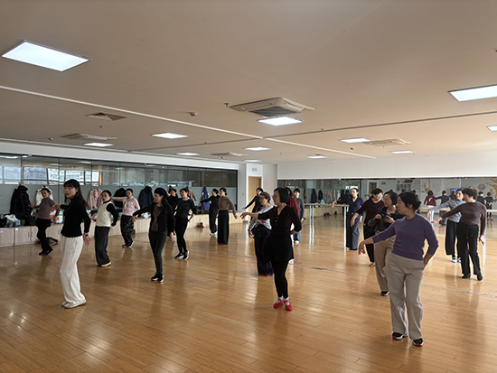 課堂上,學(xué)員們?nèi)褙炞ⅰ⒄J(rèn)真聆聽,緊跟老師的節(jié)奏反復(fù)練習(xí)。抬手、轉(zhuǎn)身、屈膝、舒展,每一個動作都認(rèn)真模仿,每一次練習(xí)都全力以赴。“起勢要如春風(fēng)拂柳,轉(zhuǎn)身須似流水行云”,老師的悉心指導(dǎo)與學(xué)員們的積極投入,讓舞蹈教室充滿了生機(jī)與活力。