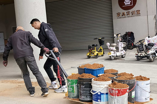 活動中,教師們自發組隊、分工協作,各個環節都有條不紊、毫無懈怠:有的手持鐵鍬彎腰鏟土,將泥土裝好,動作嫻熟而認真;有的配合搬運花株,步履穩健地穿梭在現場;有的推著推車往返運土,將泥土運送至指定區域,一路步履匆匆卻井然有序,各環節銜接順暢,默契十足。春日暖陽下,老師們忙碌的身影成為校園里一道溫暖的風景線。而這份無私奉獻與躬身勞動的熱情,也深深感染了課間路過的同學們,不少學生見狀主動上前,自愿加入志愿服務隊伍,有的幫忙扶穩土袋與花株,有的助力推送運土車,師生并肩作戰、齊心協力。原本忙碌的勞動現場,因學生的加入更添了幾分熱鬧與溫情,汗水在額頭凝聚,笑容在臉上綻放,每一個動作都飽含著對校園的熱愛與呵護。