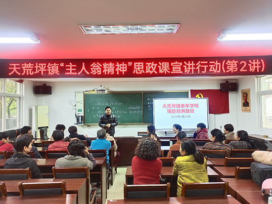 開班儀式上,天荒坪成校汪華忠校長首先以“主人翁”精神為主題展開思政宣講。他結(jié)合老年群體的生活實際,深入淺出地詮釋了“主人翁”精神在晚年生活中的時代內(nèi)涵:“大家從工作崗位退休后,依然是生活的主角、社區(qū)的主人。走進(jìn)成校課堂,更要做學(xué)習(xí)的主人翁,主動汲取新知識、培養(yǎng)新愛好,讓晚年生活綻放別樣光彩。”