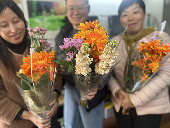 此外,學校還組織開展了插花藝術體驗活動。在專業花藝師指導下,老師們精心搭配花材,創作出一束束富有美感的插花作品,展現了積極向上的精神風貌。
