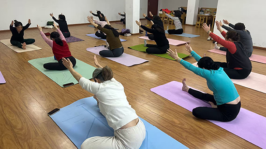 在瑜伽課堂里,學(xué)員們伴著舒緩的音樂(lè),在專業(yè)老師的指導(dǎo)下舒展身體、放松心靈,于一呼一吸間修養(yǎng)身心、舒緩壓力,盡享靜謐時(shí)光。