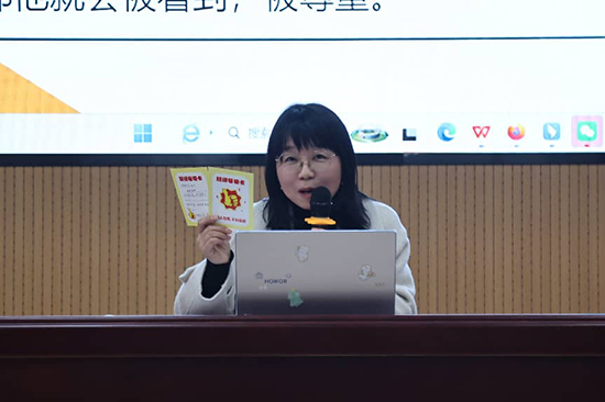 金建風老師以《以“敬”立心 引領學生思想航向》為題,分享在學生思想教育方面的探索與思考。她借助“夸夸卡”這一載體,引導學生“敬畏規則”“尊敬師長”“敬愛同伴”,在潤物無聲中幫助學生扣好人生第一??圩?。分享兼具理論深度與實踐溫度,為與會教師帶來深刻啟發。