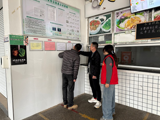 走訪中,黨員教師們按照食堂衛(wèi)生管理規(guī)范,佩戴口罩、帽子,有序查看食堂各功能區(qū)域。重點檢查操作間、食材庫房環(huán)境衛(wèi)生,細(xì)致核查設(shè)備運行與維護(hù)情況,并圍繞食品安全責(zé)任落實、原材料采購與儲存、餐飲具清洗消毒等關(guān)鍵環(huán)節(jié)進(jìn)行認(rèn)真核驗。