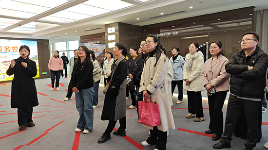 在港區講解員的引導下,黨員們依次參觀了綜合樓大廳、十二樓觀景平臺、展廳及電子沙盤,深入了解穿山港區的發展歷程。穿山港區是全球第二大單體集裝箱碼頭,2024年完成吞吐量1151萬標準箱,是我國前沿水深最深、泊位等級最大的集裝箱碼頭之一。