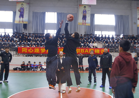 云和職技校及二中、三中代表隊與浙BA球星聯袂上演友誼賽,嫻熟運球、精準投籃、默契配合,每一次攻防都扣人心弦,賽場尖叫與掌聲此起彼伏。