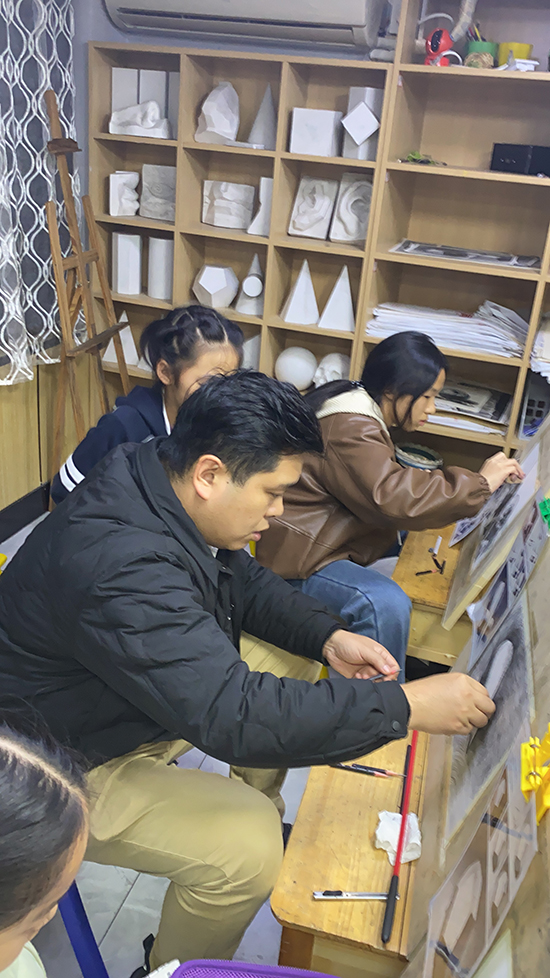 他深耕美術教育近十年,開設多個校區,覆蓋幼少兒美術、初高中藝考、成人繪畫等全年齡段教學。課堂上,他堅持親自示范、手把手教學;課堂外,他用心陪伴、悉心引導,用專業與熱愛點亮每一個孩子的藝術夢。